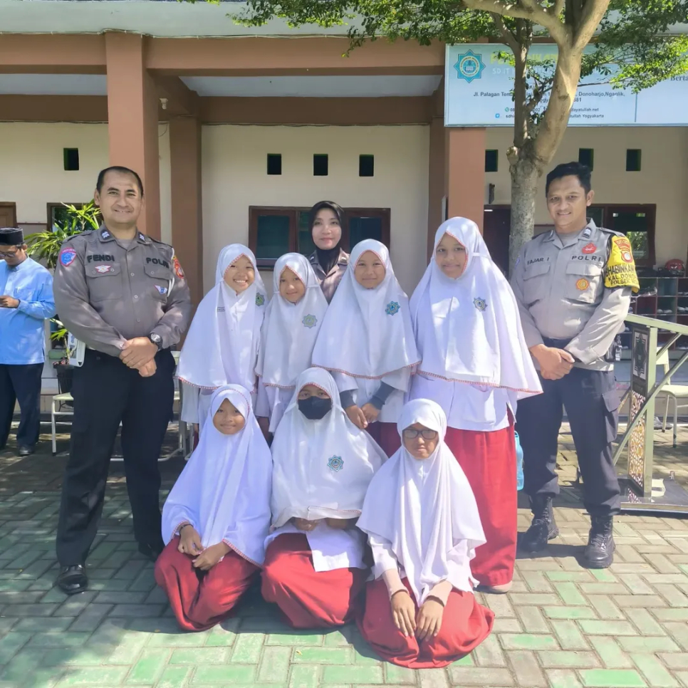 Ngaglik - Personil Polsek Ngaglik melaksanakan kegiatan Polisi Sahabat Anak (PSA) di SD Hidayatullah Balong, Kalurahan Donoharjo, Kapanewon Ngaglik, Kabupaten Sleman.Kegiatan PSA ini bertujuan untuk menanamkan sejak dini pemahaman kepada para pelajar tentang etika dan tata tertib berlalu lintas, khususnya bagi siswa-siswi tingkat Sekolah Dasar. Dalam kegiatan tersebut, personil Polsek Ngaglik memberikan materi secara interaktif dan komunikatif agar mudah dipahami oleh anak-anak.