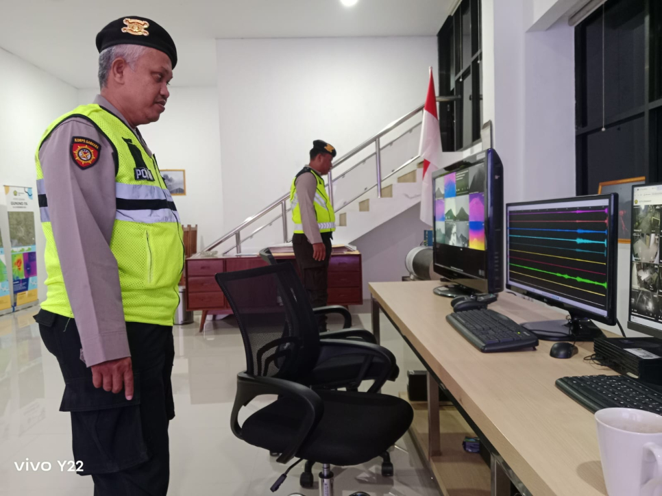 Sleman - Personel Piket Sub Sektor Kaliurang melaksanakan kegiatan patroli sambang di wilayah PGM (Pos Pengamatan Merapi) Kaliurang sebagai upaya pemantauan rutin terhadap aktivitas Gunung Merapi yang dalam beberapa minggu terakhir menunjukkan peningkatan aktivitas.Dari hasil koordinasi dengan petugas PGM, situasi Gunung Merapi hingga saat ini terpantau aman, meskipun visual puncak gunung tertutup kabut. Status aktivitas Gunung Merapi masih berada pada Level Siaga (Level 3).