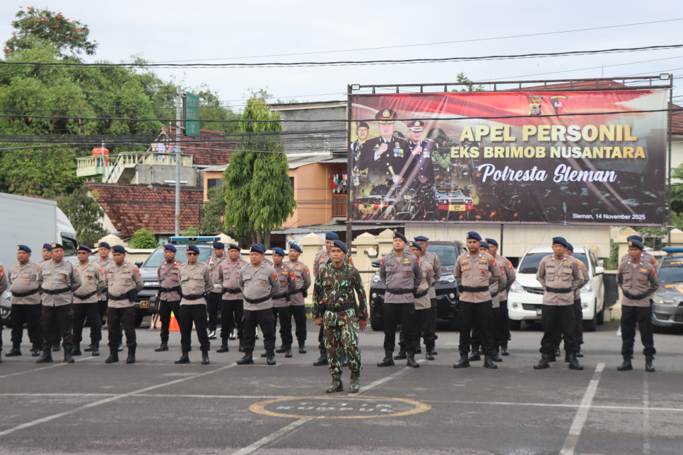 Sleman - Polresta Sleman menggelar apel khusus personel eks Brimob Nusantara yang saat ini berdinas di jajaran Polresta Sleman. Kegiatan ini dilaksanakan dalam rangka memperingati Hari Ulang Tahun (HUT) Korps Brimob Polri ke-80 yang jatuh pada 15 November, dengan mengusung tema dan moto Brimob Presisi untuk Masyarakat.Apel dipimpin langsung oleh Kabag Ops Polresta Sleman, Kompol Masnoto, S.Pd., M.H., dan diikuti oleh seluruh personel eks Brimob yang kini bertugas di berbagai satuan fungsi di Polresta Sleman.