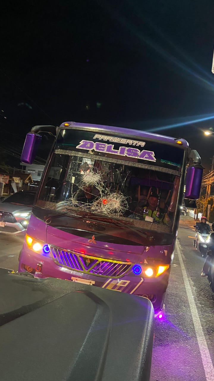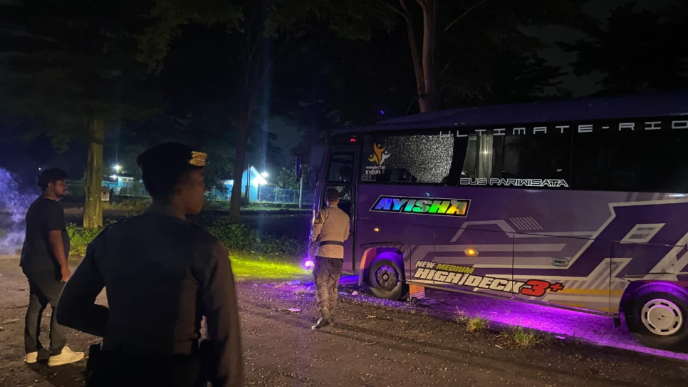 Sleman - Personel Pamapta bersama anggota Sat Samapta Polresta Sleman mendatangi lokasi kejadian terkait adanya keributan yang disertai dugaan pengrusakan bus rombongan suporter Lamongan.Setibanya di lokasi, petugas melakukan pengecekan situasi dan memastikan kondisi sekitar. Terpantau situasi dalam keadaan sepi, aman, dan kondusif, tidak ditemukan adanya potensi gangguan lanjutan.