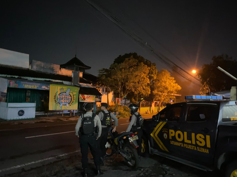 Sleman - Satuan Samapta Polresta Sleman melaksanakan giat patroli stasioner dan mobile di sejumlah titik rawan gangguan kamtibmas di wilayah hukum Polresta Sleman.Kegiatan ini bertujuan untuk menjaga keamanan, ketertiban, serta menciptakan situasi kamtibmas yang aman dan kondusif di wilayah Kabupaten Sleman, terutama pada malam akhir pekan yang berpotensi meningkatnya aktivitas masyarakat.