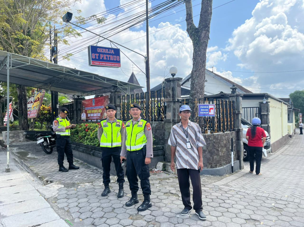 SLEMAN - Dalam rangka menjaga situasi kamtibmas yang aman dan kondusif, Sat Samapta Polresta Sleman melaksanakan kegiatan patroli dan sambang di sejumlah gereja yang berada di wilayah hukum Polresta Sleman.Kegiatan patroli dan sambang tersebut dilaksanakan di Gereja ST Petrus Warak, Gereja ST Maria Assumpta Pakem, Gereja ST Aloysius Gonzaga, serta gereja-gereja lain yang berada di seluruh wilayah hukum Polresta Sleman.