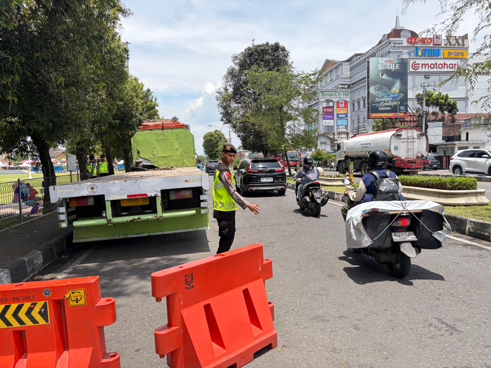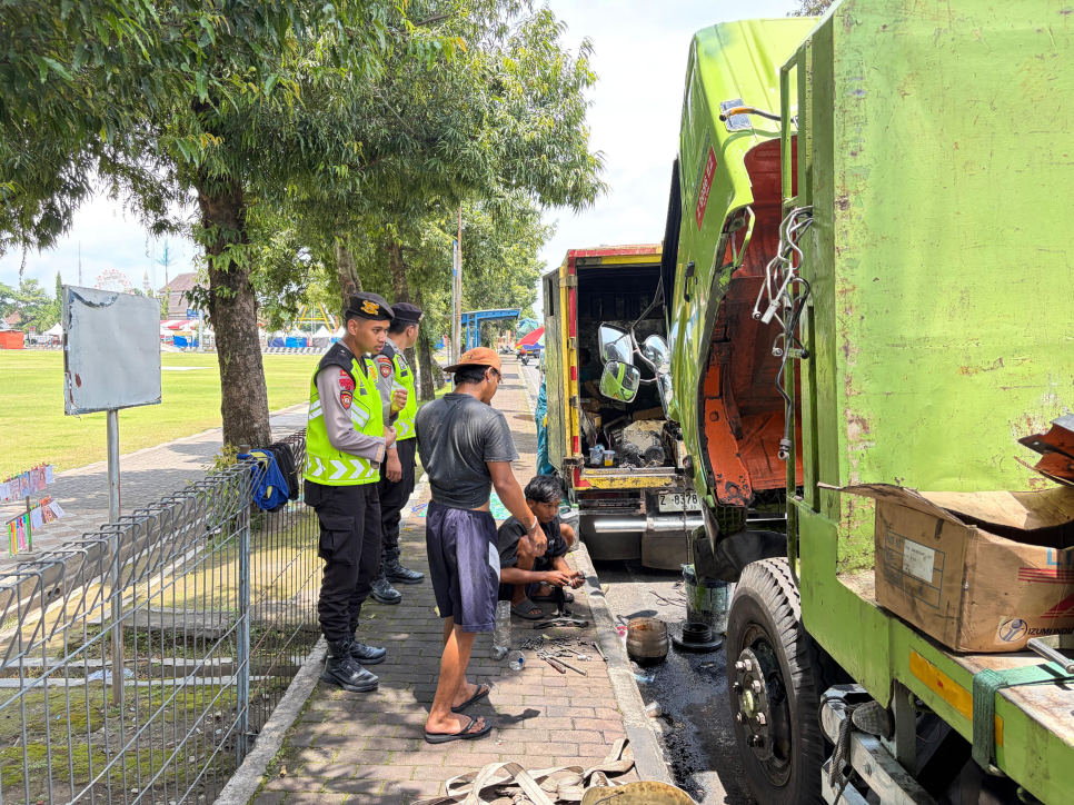 Melihat situasi tersebut, anggota Sat Samapta segera mengambil tindakan cepat guna mencegah terjadinya kemacetan maupun kecelakaan lalu lintas. Personel kemudian membantu mengatur arus kendaraan di sekitar lokasi hingga proses perbaikan truk selesai dilakukan.