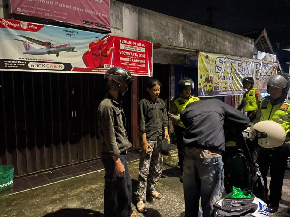 Sleman - Dalam rangka mengantisipasi terjadinya kejahatan jalanan dan balap liar, Anggota Team Raimas Sat Samapta Polresta Sleman melaksanakan kegiatan patroli dan pemeriksaan terhadap sekelompok remaja yang sedang berkumpul di Jalan KRT Pringgodiningrat pada malam hari.Saat dilakukan pemeriksaan, petugas tidak menemukan adanya senjata tajam maupun barang-barang mencurigakan lainnya. Selanjutnya, kepada para remaja tersebut diberikan imbauan agar segera kembali ke rumah masing-masing dan tidak melakukan kegiatan yang dapat mengganggu ketertiban umum.