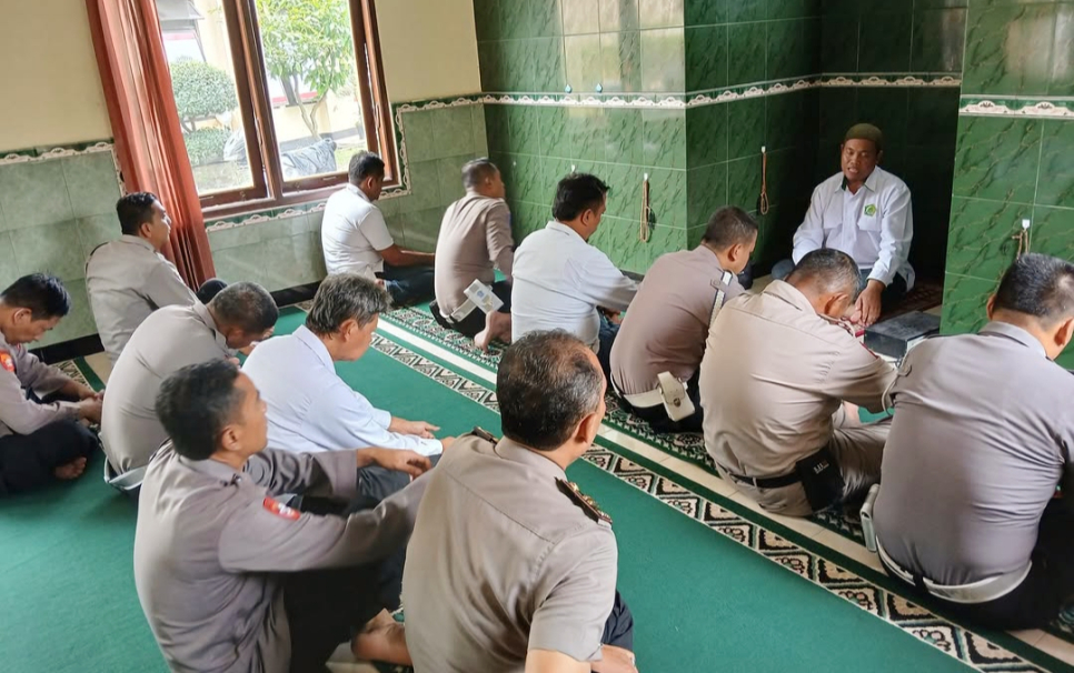 PRAMBANAN - Guna meningkatkan keimanan dan ketaqwaan personel, Polsek Prambanan Sleman menggelar pengajian pembinaan rohani dan mental (Binrohtal).Pengajian binrohtal rutin dilaksanakan setiap hari Selasa seusai apel pagi yang diikuti personel Polsek Prambanan yang beragama Islam di masjid An-Nur Polsek Prambanan.