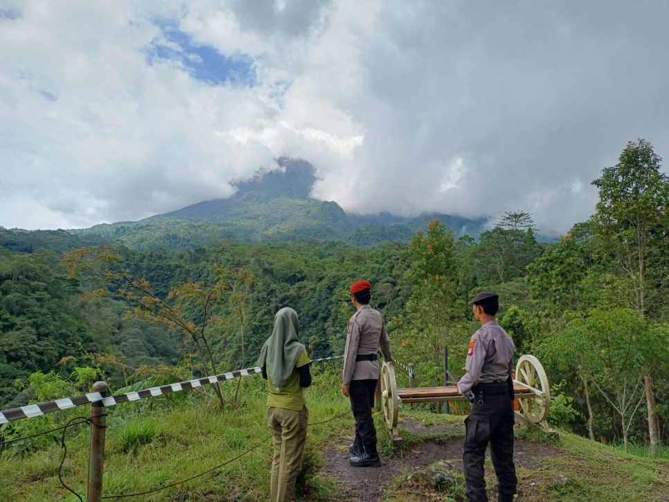 Unit Samapta dan Piket Fungsi Polsek Cangkringan Gelar Patroli Gabungan, Pantau Aktivitas Gunung Merapi Siaga Level 3