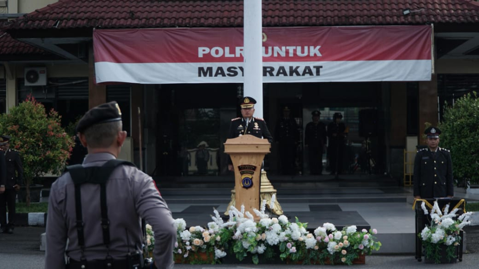 Upacara yang berlangsung khidmat ini dipimpin langsung oleh Kapolresta Sleman, Kombes Pol. Edy Setyanto Erning Wibowo, S.I.K., M.H., serta diikuti para pejabat utama jajaran Polresta Sleman meliputi para Kabag, Kasat, Kasi, Kapolsek jajaran, dan personel Polresta Sleman.