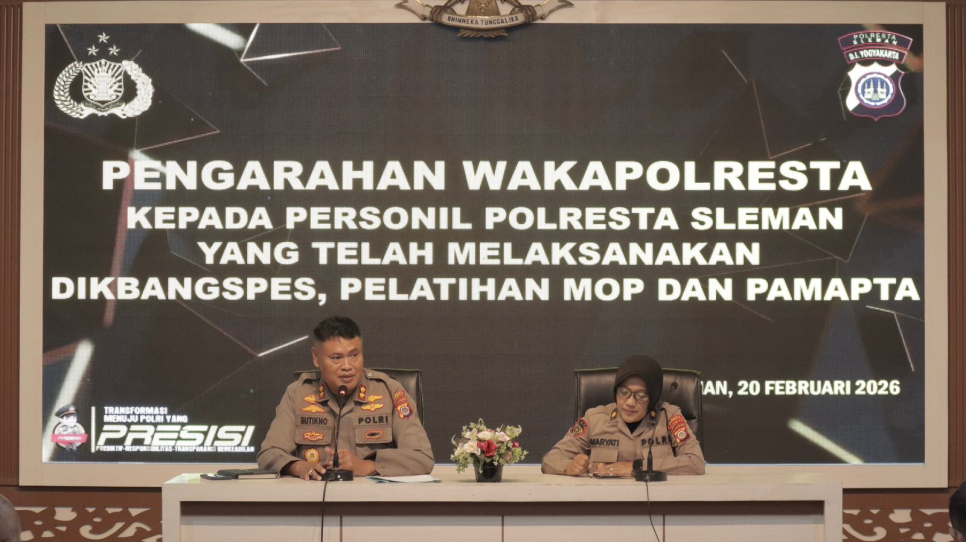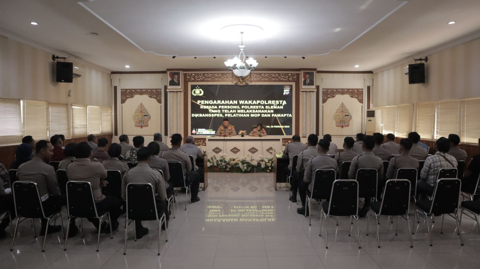 Sleman - Dalam rangka meningkatkan profesionalisme serta optimalisasi kinerja organisasi, Polresta Sleman menggelar kegiatan Arahan Pimpinan kepada personel yang telah melaksanakan Pendidikan Pengembangan Spesialisasi (Dikbangspes). Kegiatan ini dilaksanakan sebagai bentuk tindak lanjut atas pendidikan yang telah diikuti personel guna mendukung pelaksanaan tugas kepolisian yang semakin kompleks.Kegiatan dipimpin oleh Wakapolresta Sleman, Sutikno, serta didampingi oleh Kabag SDM Sumaryati. Arahan tersebut diikuti oleh seluruh personel Polresta Sleman yang telah menyelesaikan Dikbangspes di berbagai bidang fungsi kepolisian.