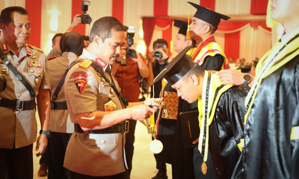 Jakarta - Lemdiklat Polri menggelar acara Penutupan Pendidikan dan Wisuda Sarjana ilmu Kepolisian Program Pendidikan Strata Satu (S-1) angkatan ke-81/Widya Wira Satya dan Program Pascasarjana (S-2) serta Doktoral (S-3) di Auditorium Sekolah Tinggi Ilmu Kepolisian (STIK), Jakarta, Kamis (20/6/2024).Wakapolri Komjen Pol Agus Andrianto membacakan amanat dari Kapolri Jenderal Listyo Sigit Prabowo. Sebelum membacakan pesan dari Kapolri, Agus mengingatkan para wisudawan untuk menjaga kehormatan institusi dan menjadi agen perubahan dalam pelayanan untuk masyarakat.
