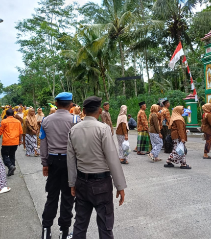 Sleman - Polsek Cangkringan melaksanakan kegiatan pengamanan kirab Bregodo dalam rangka tradisi ...