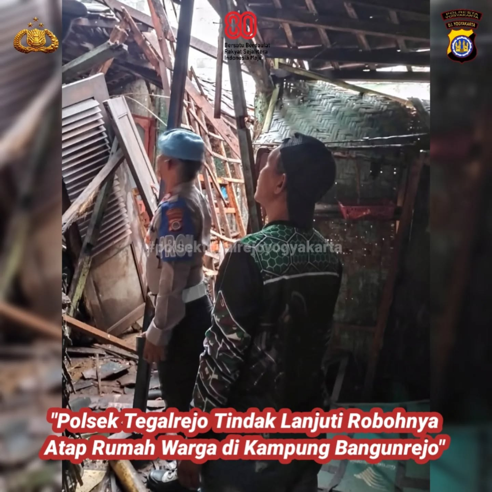 Personel Polsek Tegalrejo bersama Bhabinkamtibmas Kelurahan Kricak bergerak cepat mendatangi lokasi robohnya atap rumah warga di Kampung Bangunrejo, Kelurahan Kricak, pada Rabu (28/1/2026) siang. Kegiatan pengamanan dilokasi ini dipimpin langsung oleh Pawas Aiptu Anton Prasetyo.Insiden tersebut menimpa bagian belakang rumah warga yang ambruk setelah wilayah tersebut diguyur hujan deras. Selain faktor cuaca, kondisi material bangunan yang sudah tua serta kayu penyangga yang telah lapuk diduga menjadi penyebab utama robohnya atap seluas kurang lebih 3,5 X 4 meter tersebut. Meski tidak ada korban jiwa dalam peristiwa ini, kerugian materiil ditaksir mencapai Rp7.000.000.