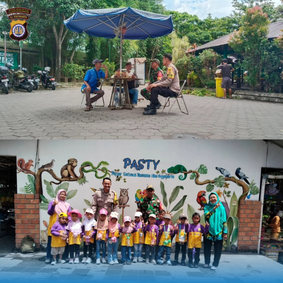 Bhabinkamtibmas Kelurahan Gedongkiwo, Polsek Mantrijeron, Aiptu Arief Rodhi, S.H., didampingi Babinsa Koramil Mantrijeron, Serka Sarijan, melaksanakan sambang dialogis di Pasar PASTY (Pasar Satwa dan Tanaman Hias Yogyakarta), Jalan Bantul, Gedongkiwo, pada Kamis (13/11/2025).Dalam kunjungan tersebut, Aiptu Arief berinteraksi dengan petugas parkir dan menyapa para murid TK Nabila Bangunjiwo yang tengah mengikuti wisata edukasi.