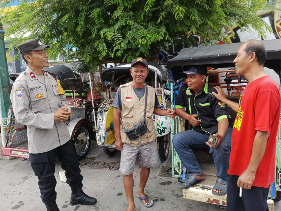 Bhabinkamtibmas Danurejan Sambangi Komunitas Becak, Sampaikan Pesan Tertib dan Kamtibmas