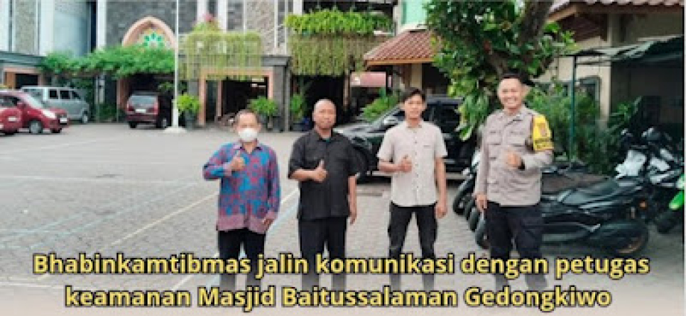 Dalam rangka menjalin komunikasi yang baik dengan masyarakat, Bhabinkamtibmas Kelurahan Gedongkiwo Polsek Mantrijeron Aiptu Arief Rodhi, S.H., melaksanakan sambang dialogis dengan petugas keamanan Masjid Baitussalaman, Gedongkiwo, Mantrijeron, Kota Yogyakarta, pada Kamis (23/10/2025).Dari hasil koordinasi dengan petugas keamanan masjid, Bapak Muji, diketahui bahwa di Masjid Baitussalaman sedang berlangsung pengajian rutin bulanan yang dimulai pukul 09.00 WIB hingga 11.00 WIB dan diikuti oleh para jamaah masjid.