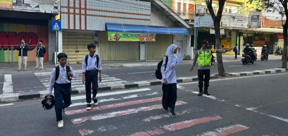 Pagi hari, Rabu (29/10/2025), Bhabinkamtibmas Kelurahan Wirobrajan Aiptu Sumaryanto melaksanakan pengaturan lalu lintas di Jalan Kapten Tendean, Wirobrajan, guna menjaga kelancaran arus kendaraan menjelang jam masuk sekolah dan kantor. Kegiatan ini rutin dilakukannya untuk menekan potensi kecelakaan serta menciptakan suasana aman dan tertib di wilayah tersebut.Usai melaksanakan pengaturan lalu lintas, Aiptu Sumaryanto melanjutkan kegiatan dengan sambang ke SMP Muhammadiyah 3 Yogyakarta. Dalam kunjungan itu, ia berdialog dengan dua petugas keamanan sekolah, Bapak Lilik dan Bapak Arifin, guna memantau situasi kamtibmas di lingkungan pendidikan tersebut.