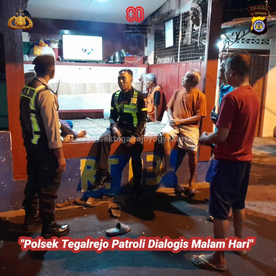 Personel Polsek Tegalrejo melakukan penyisiran wilayah melalui patroli dialogis pada Selasa malam (23/12/2025). Langkah ini diambil untuk memastikan situasi keamanan dan ketertiban masyarakat tetap terkendali di tengah meningkatnya aktivitas warga menjelang libur akhir tahun.Kegiatan tersebut dipimpin oleh Panit 2 Samapta Polsek Tegalrejo, Aiptu Puput Tri Atmojo. Petugas menyasar sejumlah lokasi strategis, mulai dari Pos Kamling Kampung Jatimulyo RT 03 RW 01, hingga pusat-pusat aktivitas publik seperti kafe, restoran, dan warung makan (warmindo).