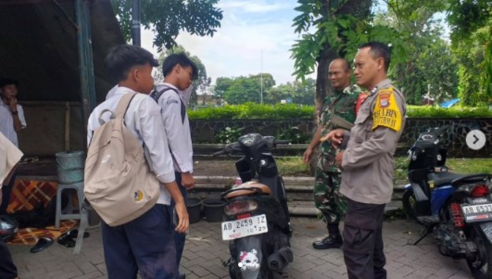 Petugas memberikan edukasi secara langsung kepada para pelajar agar tidak berkeliaran di jalanan dengan atribut sekolah guna menghindari risiko gesekan atau tawuran antar pelajar yang kerap bermula dari kerumunan di ruang publik.