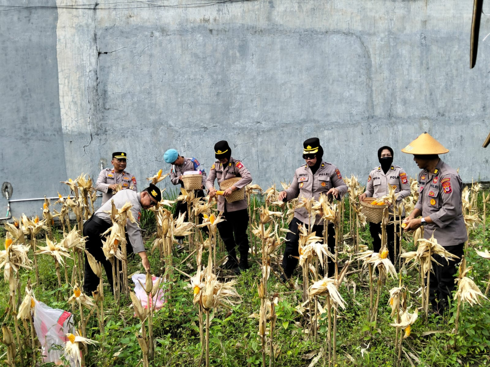 Dukung Ketahanan Pangan, Bhabinkamtibmas Bener Gelar Panen Raya Jagung