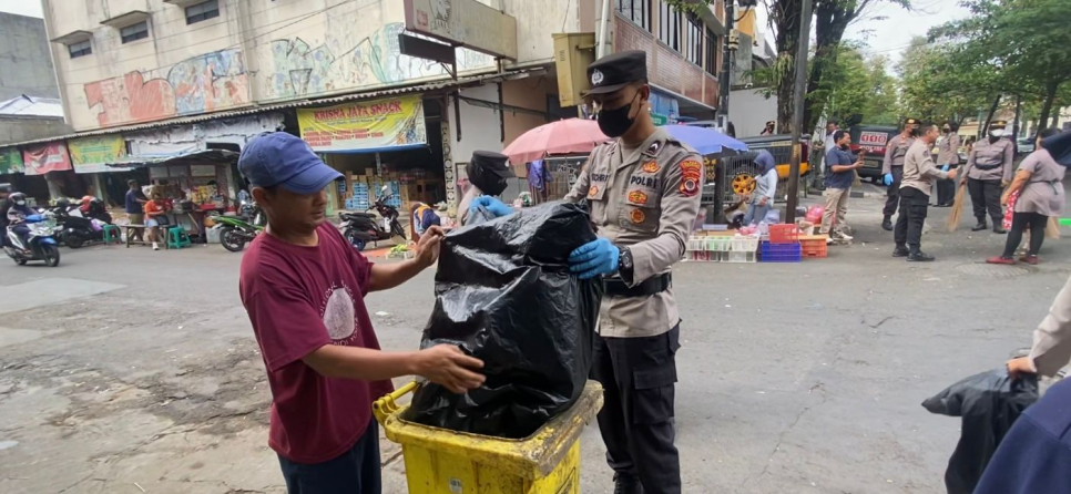 Selama kegiatan, para anggota Polresta juga mengajak para pedagang dan tukang becak yang beroperasi di sekitar pasar untuk ikut serta. Hal ini sekaligus merupakan upaya edukasi dan penyuluhan untuk meningkatkan kesadaran mereka terhadap pentingnya menjaga kebersihan lingkungan.