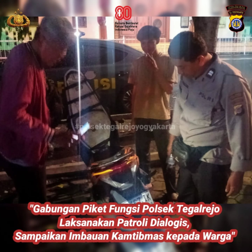Personel gabungan piket fungsi Polsek Tegalrejo menggelar patroli wilayah di sejumlah titik yang dianggap rawan gangguan Kamtibmas, Selasa (27/1/2026) malam. Langkah ini diambil sebagai upaya cipta kondisi guna memastikan situasi tetap aman dan kondusif menjelang datangnya bulan suci Ramadan.Kegiatan patroli dipimpin oleh Pawas Aiptu Samsudin, S.H., bersama personel lintas fungsi. Dalam patrolinya, petugas menyisir sejumlah warung maupun toko yang dicurigai menjual minuman keras. Pemeriksaan juga dilakukan terhadap orang maupun barang bawaan yang dianggap mencurigakan, guna mengantisipasi peredaran narkoba, senjata tajam, hingga benda berbahaya lainnya.