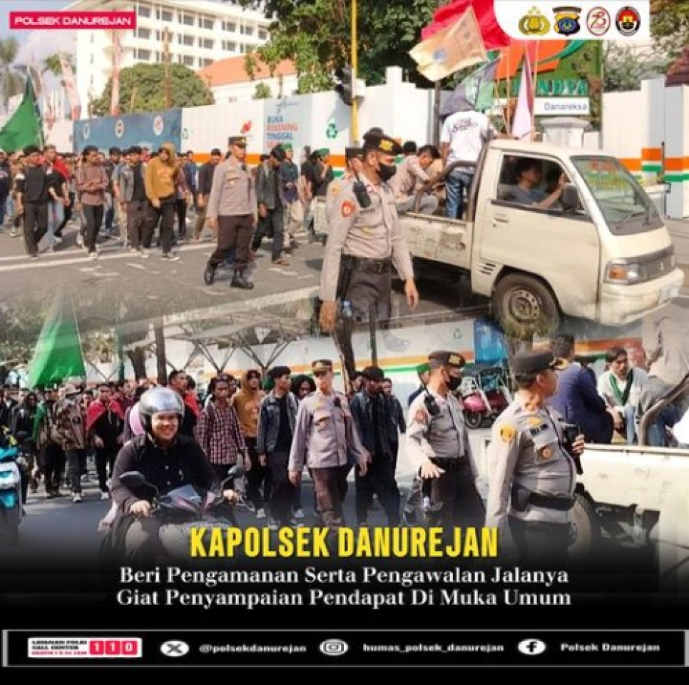 Kapolsek Danurejan mengapresiasi kerjasama seluruh personel dan elemen terkait yang telah berkontribusi dalam menjaga kelancaran dan keamanan aksi unjuk rasa tersebut. (Humas Polsek Danurejan)