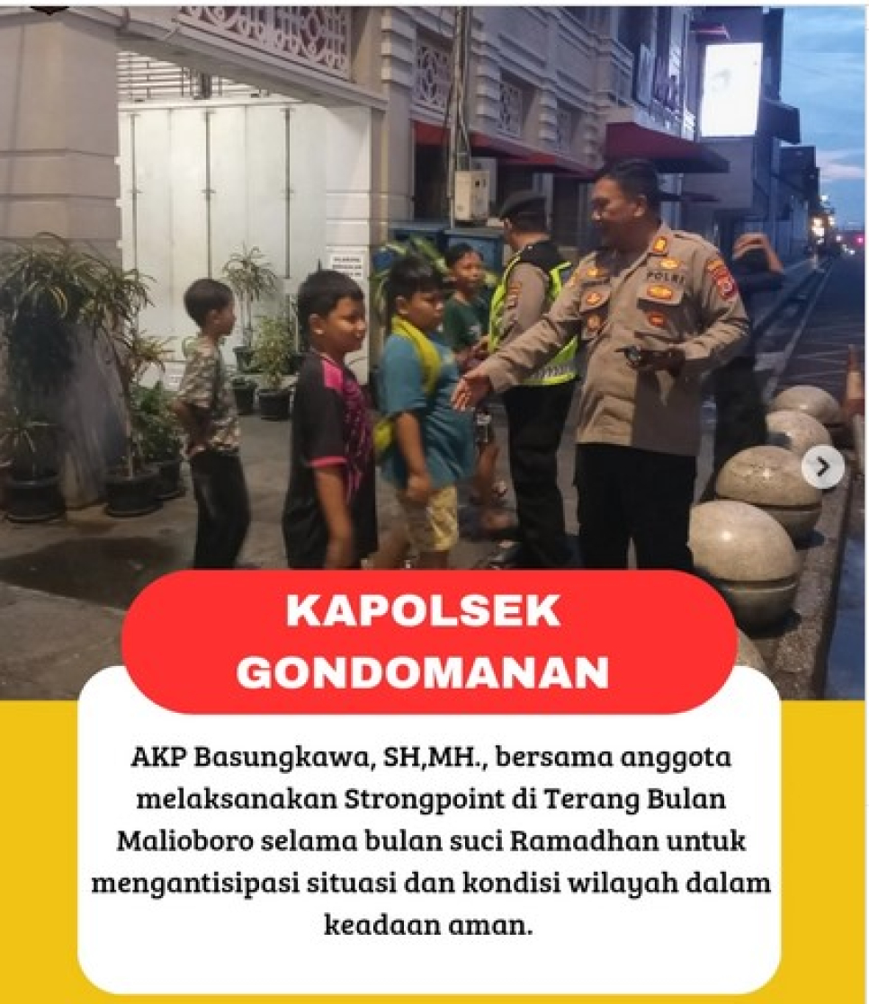 "Kami akan terus hadir secara konsisten di tengah masyarakat. Dengan patroli mobile dan sinergi bersama unsur terkait, kami optimis situasi kamtibmas di Gondomanan tetap terkendali sehingga warga dapat menjalankan ibadah dengan tenang," ujarnya.