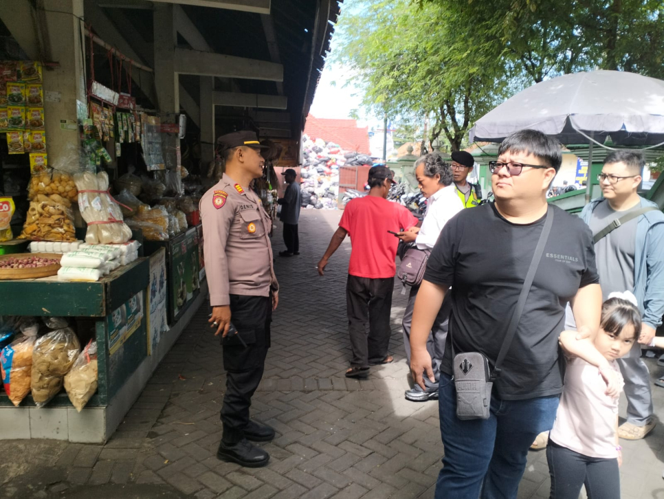 Kapolsek Kraton AKP Denis Efendi, S.H., bersama Bhabinkamtibmas Kelurahan Kadipaten Brigadir Tisna melaksanakan pemantauan situasi keamanan dan ketertiban masyarakat di kawasan Pasar Ngasem, Selasa pagi (23/12/2025), menjelang libur panjang Natal dan Tahun Baru.Pemantauan dilakukan seiring meningkatnya aktivitas masyarakat dan wisatawan yang berkunjung ke wilayah Kota Yogyakarta selama masa liburan. Sejumlah kawasan wisata terpantau lebih ramai dibanding hari biasa, termasuk Pasar Ngasem yang menjadi salah satu tujuan favorit wisatawan untuk berbelanja bahan makanan dan menikmati kuliner tradisional.