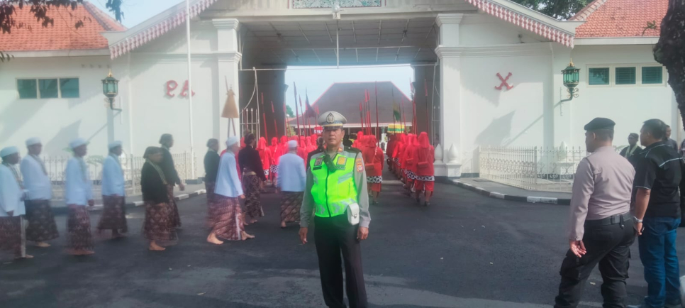 "Kehadiran personel di lapangan bertujuan untuk memastikan seluruh rangkaian ritual adat berjalan dengan khidmat, aman, dan tertib. Kami memberikan pengawalan penuh pada iring-iringan prajurit agar prosesi distribusi Hajad Dalem menuju masjid besar tidak terganggu oleh arus lalu lintas," ujar AKP Margono.