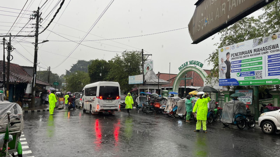 Dedikasi tinggi ditunjukkan oleh aparat kepolisian dalam menjaga kelancaran arus lalu lintas selama libur Natal dan Tahun Baru (Nataru). Meski hujan deras mengguyur, personel Polsek Kraton dan Satlantas Polresta Yogyakarta tetap bersiaga melakukan pengaturan jalan di seputaran Pasar Ngasem, Sabtu (27/12/2025) pagi.Kehadiran petugas di titik keramaian ini bertujuan untuk memastikan pergerakan kendaraan tetap mengalir dan membantu penyeberangan warga maupun wisatawan yang berkunjung ke salah satu destinasi ikonik di Yogyakarta tersebut.