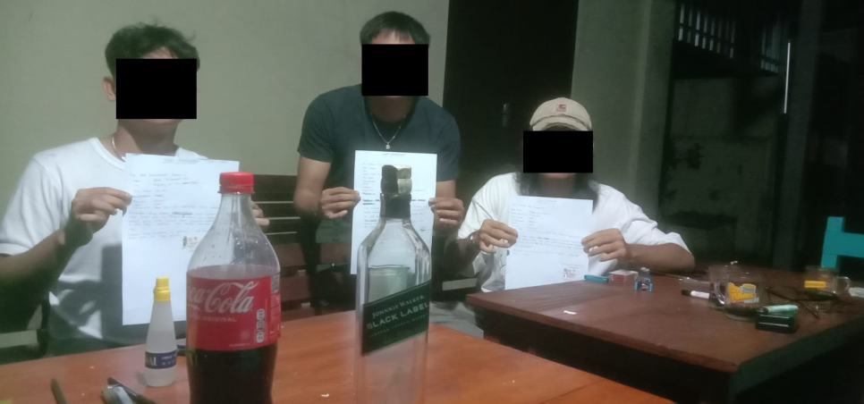 Upaya tersebut membuahkan hasil. Di Jalan Serma Taruna Ramli Nomor 03, Kotabaru, petugas mendapati 3 orang sedang mengonsumsi minuman keras. Setelah diperiksa, ditemukan sejumlah barang bukti, antara lain satu botol Johnnie Walker Black Label yang sudah habis, satu botol Jameson, dan satu botol Coca-Cola yang berisi miras oplosan.