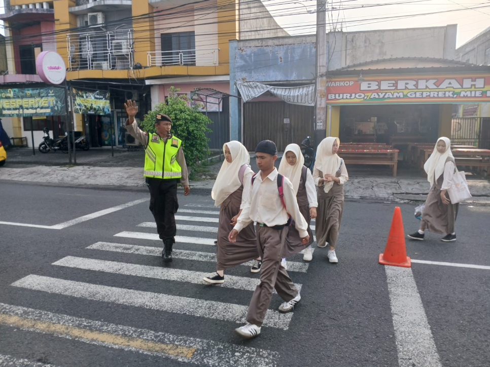Rabu pagi, 19 November 2025, personel Polsek Mergangsan Aiptu Sudari Hadi, S.H. dan Aipda Surahmad melaksanakan kegiatan rutin pengaturan arus lalu lintas serta membantu penyeberangan masyarakat, pelajar, dan pengguna jalan di depan SMA UII, Jl. Tamansiswa, Yogyakarta.Pada jam-jam tersebut, arus lalu lintas di sekitar sekolah terpantau cukup padat karena banyak warga mulai beraktivitas, baik untuk berangkat sekolah, bekerja, maupun kegiatan lainnya. Kehadiran personel Polsek Mergangsan di lokasi membantu mengurai kepadatan kendaraan, sekaligus memastikan pelajar dan pejalan kaki dapat menyeberang dengan aman.