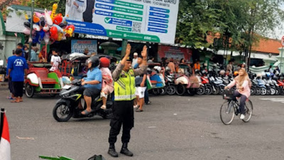 Guna menjaga kelancaran arus lalu lintas dan memberikan rasa aman kepada masyarakat, Aiptu Riyanto bersama Aiptu Tri Yulianto melaksanakan pengaturan arus lalu lintas di sekitar kawasan Pasar Ngasem. Kehadiran anggota Polri tersebut sangat membantu pengunjung, khususnya saat menyeberang jalan, sekaligus menciptakan situasi yang aman dan tertib. (Humas Polsek Kraton)