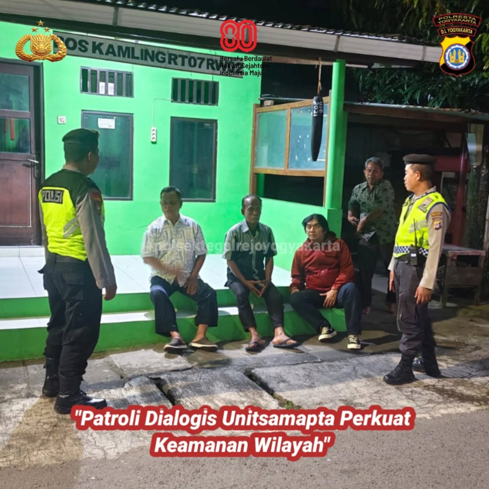 Minggu malam (16/11/2025), personel Unit Samapta Polsek Tegalrejo Polresta Yogyakarta yang dipimpin Panit 3 Samapta Aiptu Yudho Topolasono, S.H., melaksanakan patroli dialogis di sejumlah titik strategis. Salah satu lokasi yang dikunjungi adalah Pos Kamling RT 07 RW 02 Kampung Bener. Patroli ini dilakukan untuk memantau situasi kamtibmas serta menyampaikan imbauan kepada masyarakat.Dalam kesempatan tersebut, warga diimbau untuk mengaktifkan ronda malam secara bergantian guna menjaga keamanan lingkungan. Petugas juga meminta agar jadwal ronda dijalankan dengan tertib dan diikuti oleh seluruh petugas jaga. Selain berjaga di pos, warga diharapkan turut melakukan patroli keliling secara berkala.