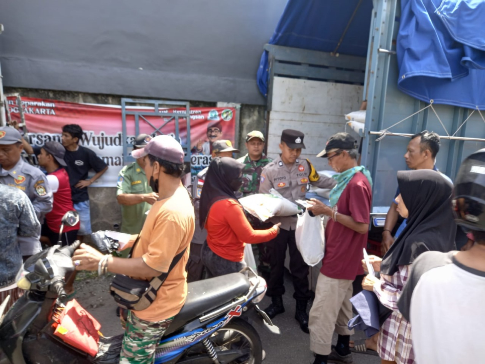Dua unit truk bantuan telah bersiaga sejak pukul 06.30 WIB. Proses distribusi berlangsung melalui kerja sama berbagai unsur, mulai dari petugas Perum Bulog, Tenaga Kesejahteraan Sosial Kecamatan (TKSK) Mergangsan, anggota IPSM, hingga Linmas Kelurahan Keparakan yang membantu pengaturan verifikasi data hingga penyerahan bantuan.