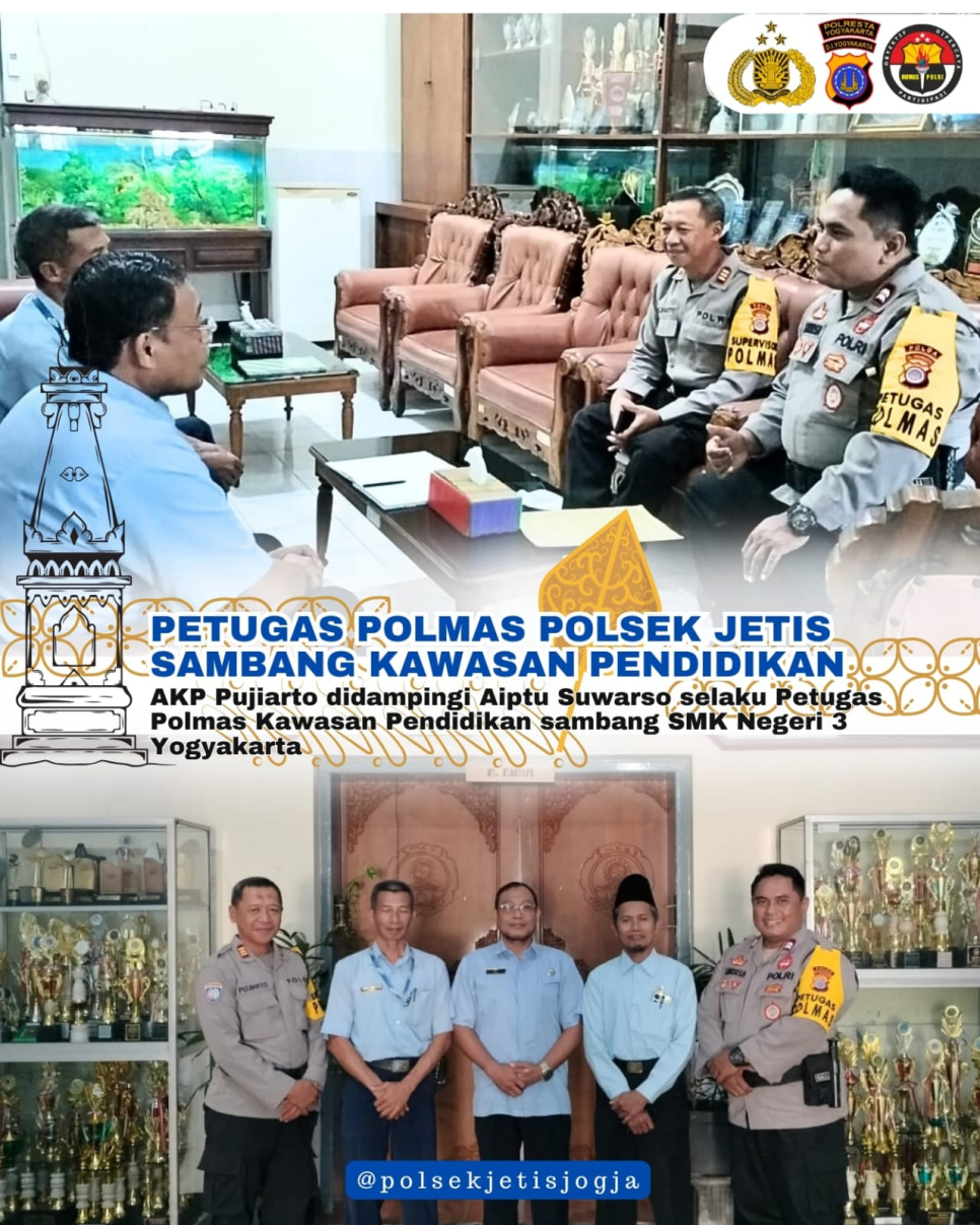 AKP Pujiarto, didampingi Aiptu Suwarso selaku Petugas Polmas kawasan Pendidikan, mengunjungi SMK Negeri 3 Yogyakarta yang terletak di Jalan Wolter Monginsidi.