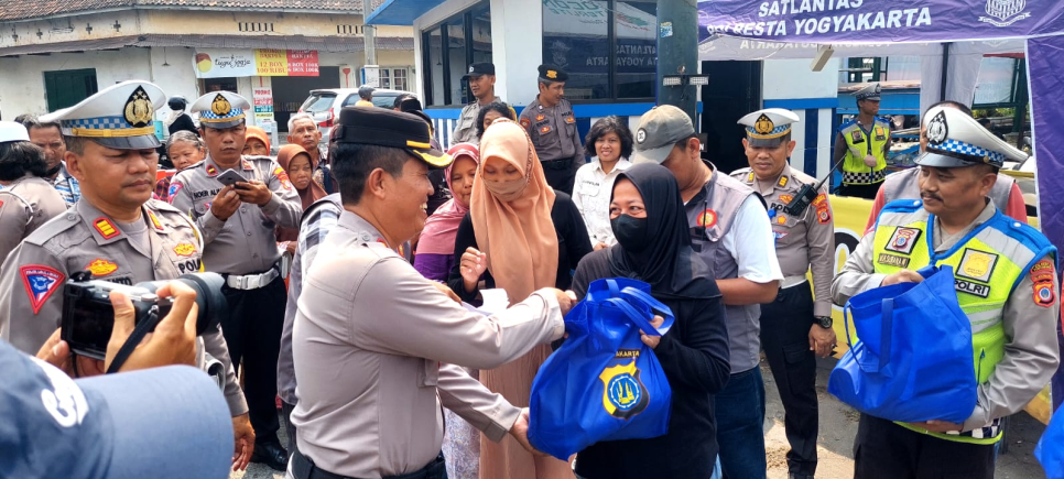 Paket sembako yang dibagikan sebanyak 50 (lima puluh) paket, terdiri dari beras, minyak goreng, gula pasir, dan mie instan. Penyerahan paket sembako dilakukan oleh Ajun Komisaris Polisi Maryanto, S.H., M.M., selaku Kepala Satuan Lalu Lintas Polresta Yogyakarta.