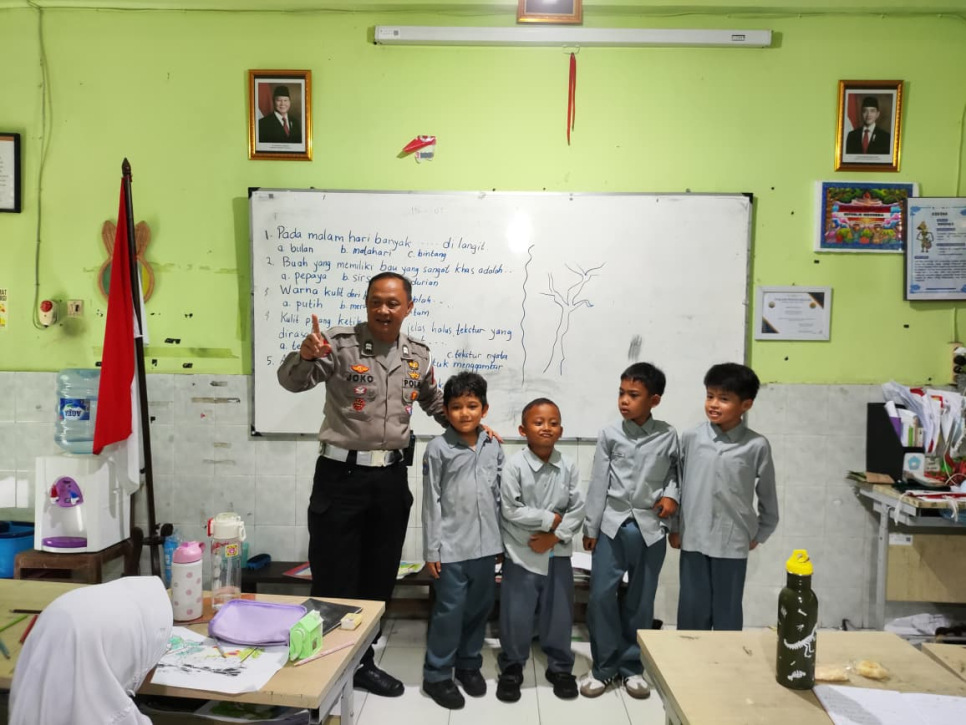 Polisi Ajak Siswa SD Jetisharjo 1 Tertib Lalu Lintas dan Waspada Penculikan