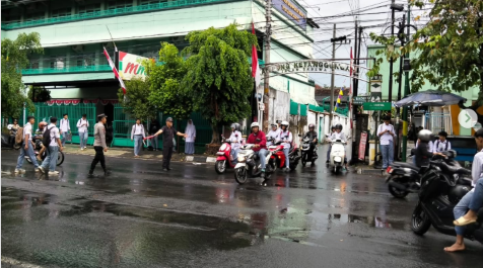 Kapolsek Wirobrajan, Kompol Ahmat Djaeni, S.H., M.H., menyampaikan bahwa kehadiran polisi di lapangan menjadi langkah nyata untuk memberikan rasa aman bagi masyarakat. "Kami hadir langsung di lapangan untuk memastikan anak-anak pulang dengan selamat dan arus lalu lintas tetap lancar meski cuaca kurang bersahabat," jelasnya. (Humas Polsek Wirobrajan)