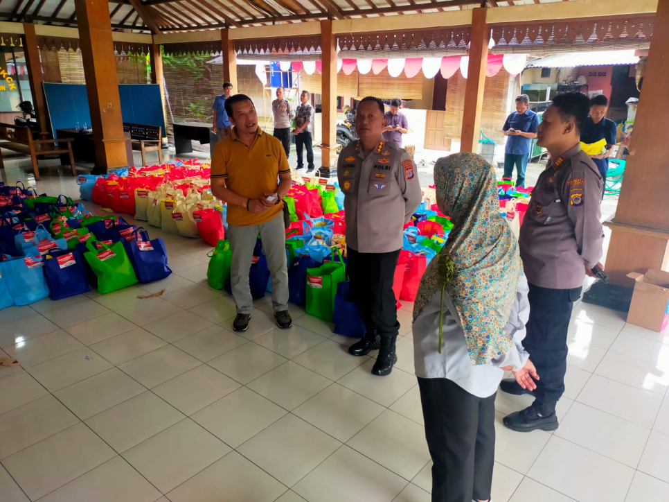 Kapolresta Yogyakarta KBP Eva Guna Pandia, S.I.K., M.H., meninjau langsung persiapan bazar di Pendopo Suryoputran, Kraton Yogyakarta, Selasa (13/8). Didampingi Kapolsek Kraton AKP Denis Efendi, S.H., dan Ibu Isrowiyah, Kapolresta melihat para personel Polri sibuk mengemas ribuan paket sembako. Proses pengemasan yang rapi ini dilakukan untuk memastikan kelancaran saat distribusi nanti.