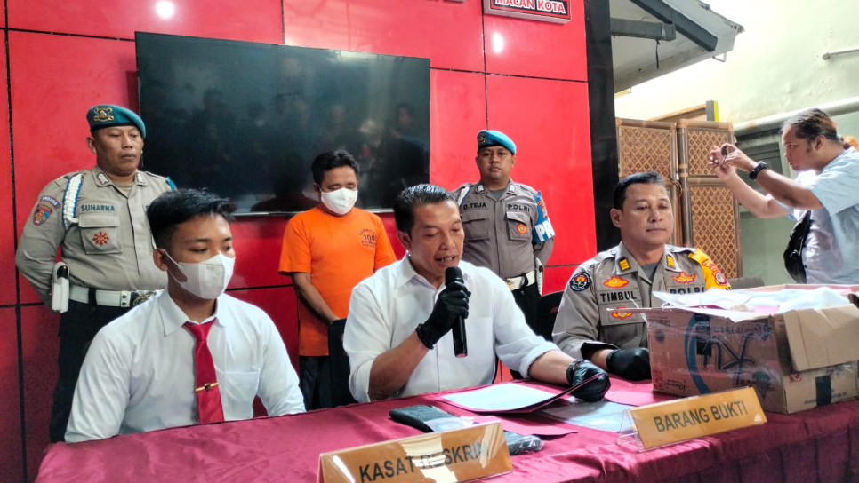 Dari tangan pelaku, polisi menyita barang bukti berupa 3 lembar bukti transfer, 2 kardus berisi potongan kertas seukuran uang seratus ribuan, 1 unit HP Realme warna biru, dan 3 bendel uang pecahan Rp100 ribu.