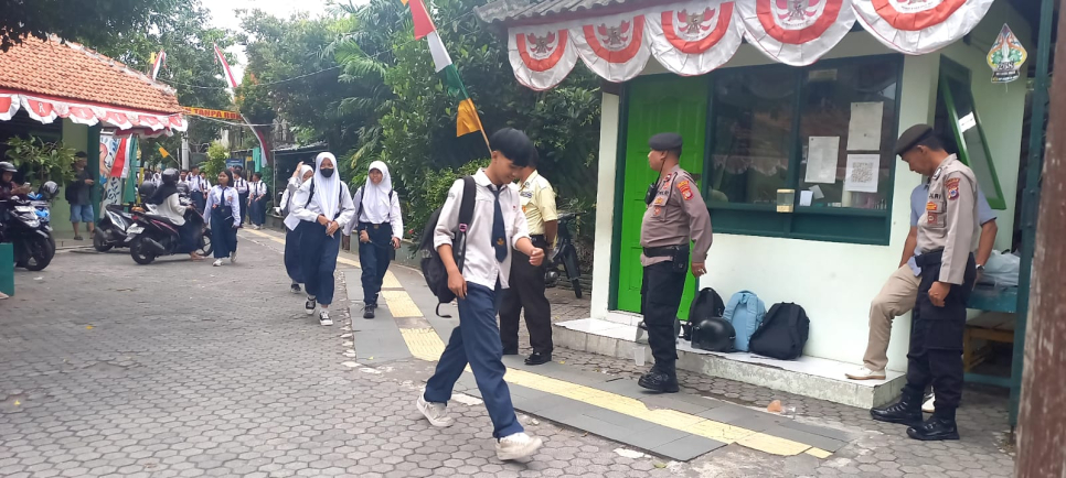 Di hadapan puluhan pelajar yang tengah menunggu jemputan, Aiptu Nolo Candroko memberikan pembinaan mengenai perlunya menjauhi perilaku negatif serta bijak dalam menyikapi arus informasi di media sosial. Ia menekankan agar para pelajar tidak mudah terprovokasi oleh ajakan yang berpotensi menimbulkan tindakan anarkis, terutama yang tersebar melalui dunia maya.
