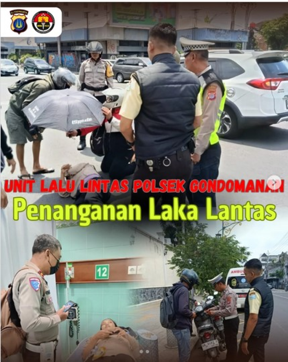 Personel Polsek Gondomanan menindaklanjuti laporan kecelakaan lalu lintas yang terjadi di Jalan Pangeran Senopati, tepatnya di depan Toko Mebel Mekar Jaya, Gondomanan, Yogyakarta, pada Jumat (31/10/2025) sekitar pukul 09.35 WIB.Berdasarkan keterangan di lokasi, kecelakaan bermula ketika sepeda motor Honda Supra warna hitam dengan nomor polisi Z-6976-YT yang dikendarai oleh saudari Ayu Widiyasanti melaju dari arah barat ke utara. Sesampainya di depan Toko Mebel Mekar Jaya, pengendara diduga kurang konsentrasi sehingga menabrak kendaraan di depannya, yakni sepeda motor Honda Revo hitam AB-6483-F yang dikendarai saudara Lilik Abidin. Akibat kejadian tersebut, saudari Ayu Widiyasanti mengalami luka dan segera dibawa menggunakan ambulans PRC Kota Yogyakarta ke Rumah Sakit Wirosaban untuk mendapatkan perawatan.