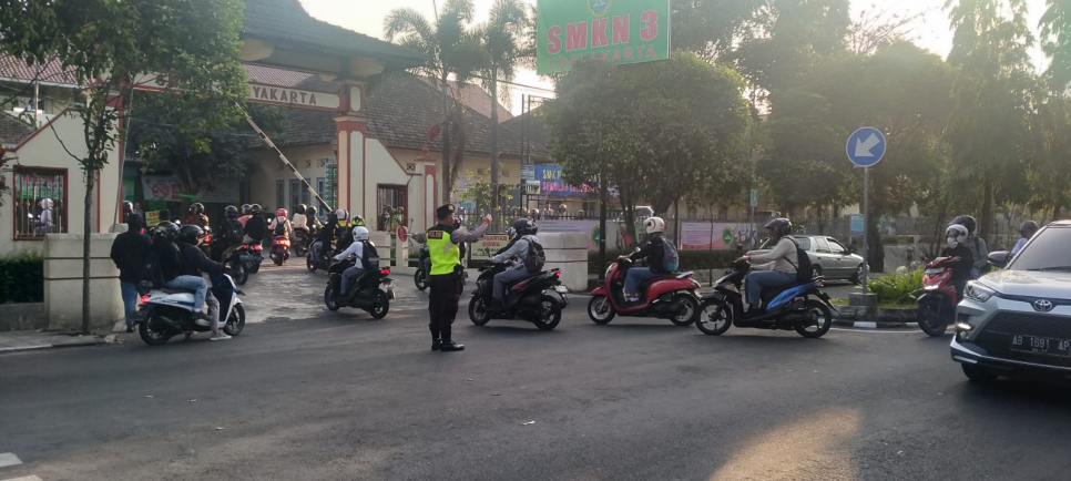 Polsek Jetis Polresta Yogyakarta menggelar kegiatan Pelayanan Masyarakat Pagi Hari di kawasan simpang empat Jetis dan Jalan Wolter Monginsidi depan SMK Negeri 3 Yogyakarta, Kamis (7/9/2023).Kegiatan ini bertujuan untuk mewujudkan rasa aman dan nyaman bagi masyarakat dan pengguna jalan. Petugas kepolisian mengatur lalu lintas dan membantu penyeberangan siswa dan masyarakat.