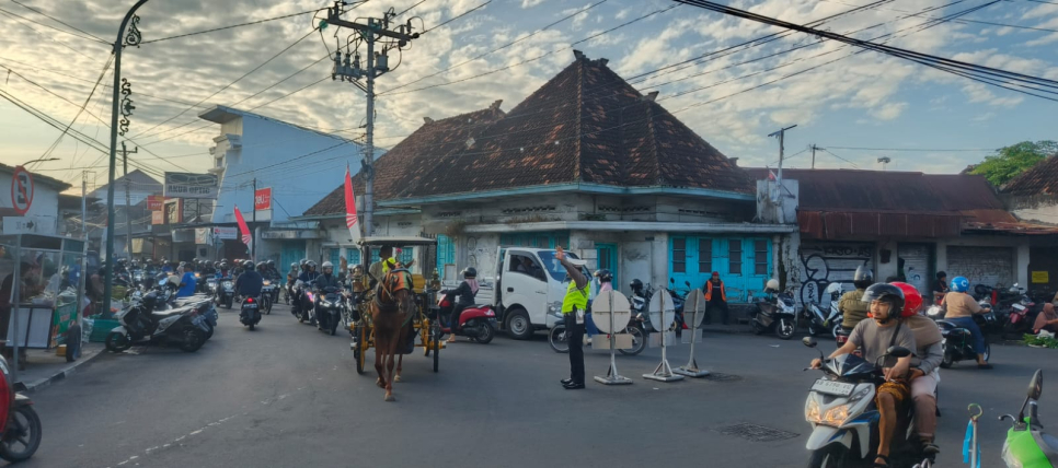 Personel polisi disiagakan di beberapa lokasi ramai, seperti simpang tiga Pasar Legi, simpang tiga PKU Muhammadiyah Kotagede, simpang empat Rejowinangun, dan ruas Jalan Ngeksigondo. Kehadiran mereka bertujuan untuk memastikan arus lalu lintas berjalan tertib dan lancar.