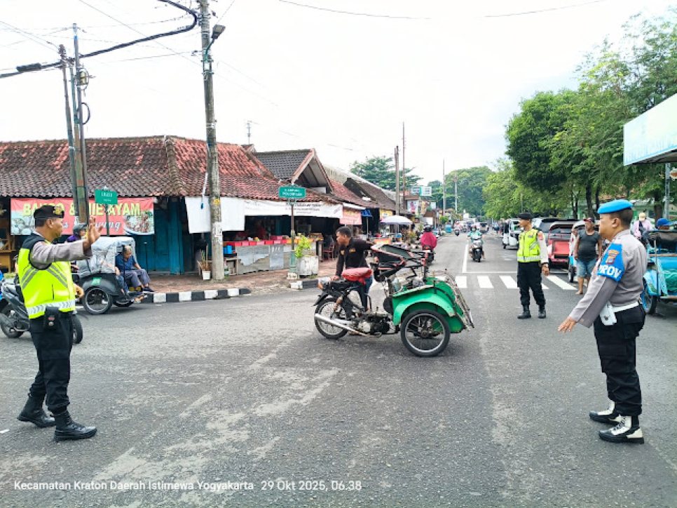Personel Polsek melaksanakan kegiatan Layanan Pagi berupa pengaturan arus lalu lintas di Simpang Pasar Ngasem, Kraton, Kota Yogyakarta, pada Rabu, 29 Oktober 2025 pagi.Kegiatan ini dilaksanakan oleh Kasi Propam Aiptu Prasetyo dan Panitia Samapta Aiptu Tri Yulianto, S.H. Kehadiran mereka di lokasi tersebut bertujuan untuk mengurai kepadatan yang sering terjadi di simpang jalan tersebut.