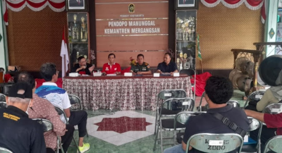 Dalam rangka persiapan Festival Olahraga Tradisional dan Lomba Lari 3K tingkat Kemantren Mergangsan, Kapolsek Mergangsan AKP Fitri Anto Heri Nugroho, S.H., M.H. yang diwakili oleh Panit Min Intelkam Aiptu Eko Supriatno menghadiri rapat koordinasi di Pendopo Manunggal Kemantren Mergangsan, Kamis (23/10/2025).Kegiatan ini diselenggarakan oleh Jawatan Sosial Kemantren Mergangsan dengan penanggung jawab MPP Mergangsan Drs. Suradi, M.Si.. Hadir dalam rapat antara lain perwakilan Danramil Mergangsan, Ketua Korman Drs. Nuri Hastana, Sekretaris Korman Bapak Haris dari PMI Kota Yogyakarta, serta sekitar 20 peserta lainnya.