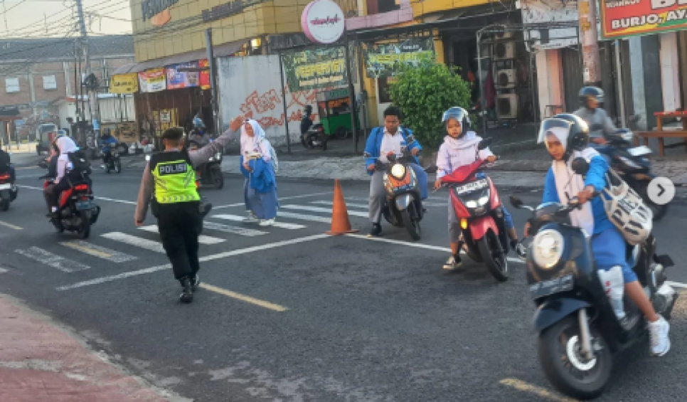 Polsek Mergangsan Layani Pagi: Atur Lalin dan Bantu Penyeberangan di Depan SMA UII