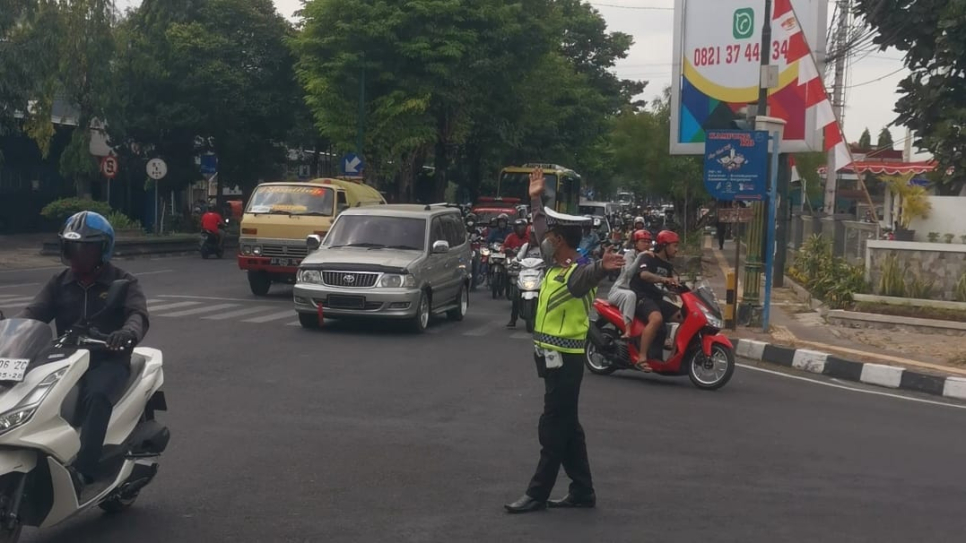 Selain mengatur arus lalu lintas, petugas juga mengajak masyarakat untuk tertib berlalu lintas. Petugas juga mengimbau kepada masyarakat agar berhati-hati berkendara, melengkapi diri dengan kelengkapan berkendara, dan selalu ingat keluarga di rumah.
