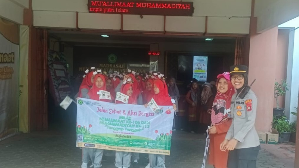 Dalam rangka merayakan Milad Mualimaat ke-106 dan Milad Muhammadiyah ke-112, Madrasah Mualimaat Yogyakarta menggelar kegiatan jalan sehat dan aksi bergizi, Kamis, (21/11/2024). Kegiatan yang diikuti sekitar 1400 peserta dari guru dan siwa ini mendapat pengamanan ketat dari Polsek Ngampilan.Kapolsek Ngampilan, AKP Sriyati, S.Sos., M.Si., memimpin langsung pengamanan kegiatan ini. Bersama anggota Polsek Ngampilan dan Polresta Yogyakarta, Kapolsek menempatkan personel di sepanjang rute jalan sehat, mulai dari start di Madrasah Mualimaat hingga finish di lokasi yang sama.