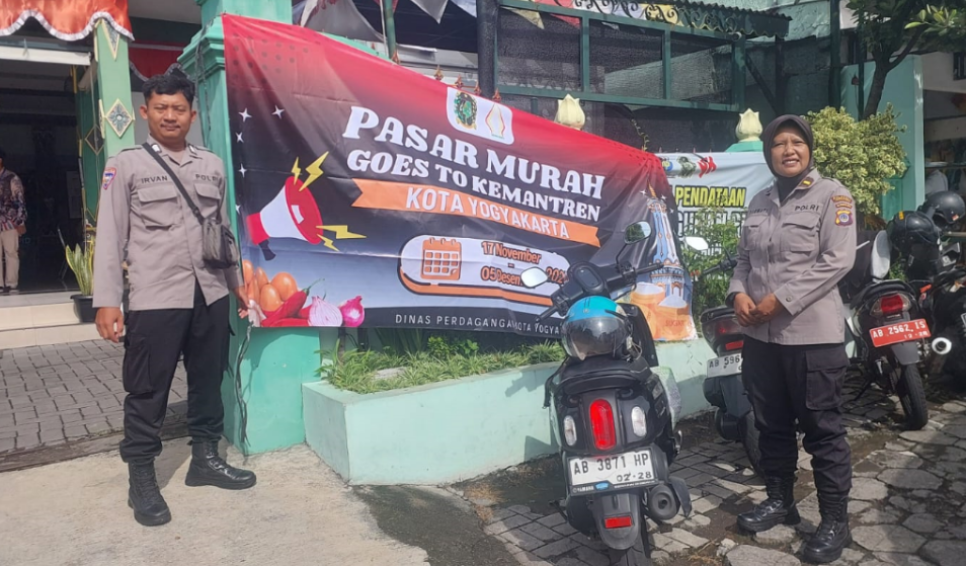 Panit 2 Binmas Polsek Pakualaman Ipda Darwati bersama anggotanya melaksanakan pengamanan kegiatan Pasar Murah Goes To Kemantren se-Kota Yogyakarta yang berlangsung di Pendopo Samiaji, Kemantren Pakualaman, pada Kamis pagi (20/11/2025). Kegiatan ini merupakan kolaborasi antara Bulog, PSM, dan UD. BM dalam rangka pelaksanaan Gerakan Pangan Murah (GPM) untuk menjaga kestabilan pasokan serta harga bahan pangan di wilayah Kota Yogyakarta.Acara tersebut diselenggarakan oleh Dinas Perdagangan Kota Yogyakarta bersama Bulog, PSM, dan UD. BM dengan penanggung jawab Kepala Dinas Perdagangan Kota Yogyakarta, Ibu Veronica Ambar Ismuwardani, S.I.P. Masyarakat dapat membeli kebutuhan pokok dengan harga terjangkau melalui beberapa stan penyedia sembako.